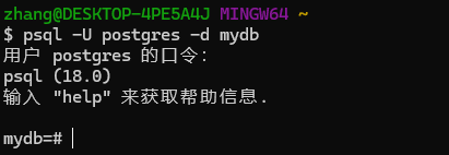 - 运行 psql -U postgres,输入密码。如果看到 postgres=# 提示符,表示成功。
